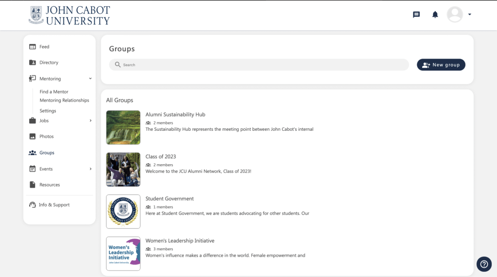 Another feature of the Alumni Network is the option to create group conversations about topics that concern or interest users sharing the same field of study, interests and careers.