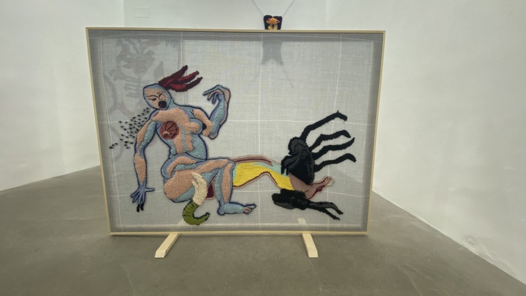 Presently, the gallery primarily represents Italian artists, but its current exhibition shows the work of Ukrainian artist Anna Perach. Her practice engages with feminist thinking surrounding the female body, its historical imprints on society, and the role of craft in “craft-ing” female identity. The exhibit, titled “Liminal Being,” features work inspired by anatomically accurate sculptures created for medical study in the seventeenth century. The first work on the floor you will encounter, titled The Hysteric (2023), displays a woman with two mysterious forms latching onto her legs, a reference to the testing that was done to “female hysterics” by Jean-Martin Charcot at the Pitié-Salpêtrière Hospital in Paris in the late nineteenth century. Hanging on the wall is an untitled sculpture incorporating woven materials and wood to call attention to the similarities in texture and appearance to human skin, muscle, and bone. While the exhibit is small, it certainly leaves visitors with new ideas about the relationships between identity, history, and materiality.