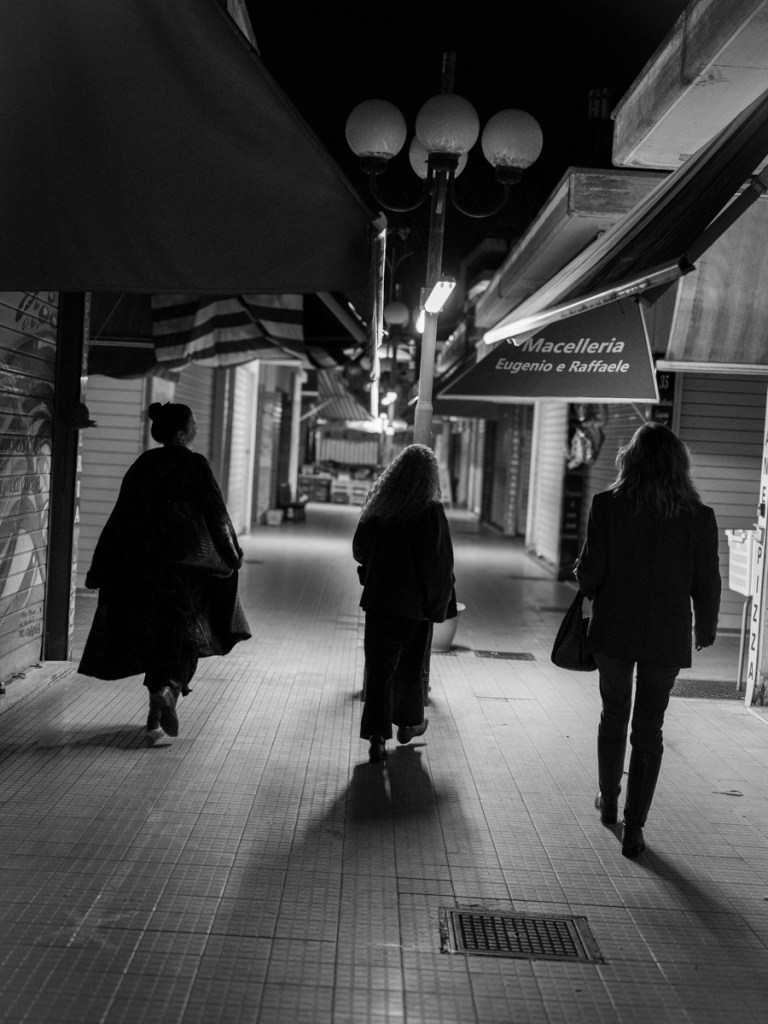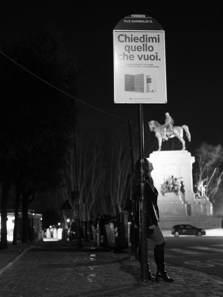The following photos were staged and taken to represent the dangers experienced by women when going out at night in Rome. They do not explicitly show any acts of sexual harassment or violence. Yet, their dark composition, and in some images, essences of loneliness are intended to generate an emotional response in the viewer. When these horrifying events take place, many women are alone, and for that reason these images predominately display single figures in locations which our eyes do not usually reach. Hopefully, by looking at these photos the viewer will have a window into these scenes, and though unlikely, walk the same dark mile in their shoes.