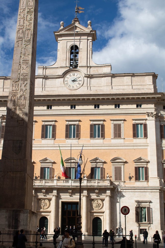 Rome: Piazza di Monte Citorio, March 12, 2024. A view of the building that holds the Chamber of Deputies of the Italian Parliament. Prime Minister Giorgia Meloni supports recently proposed legislation that seemingly violates the parental rights of same sex couples.
