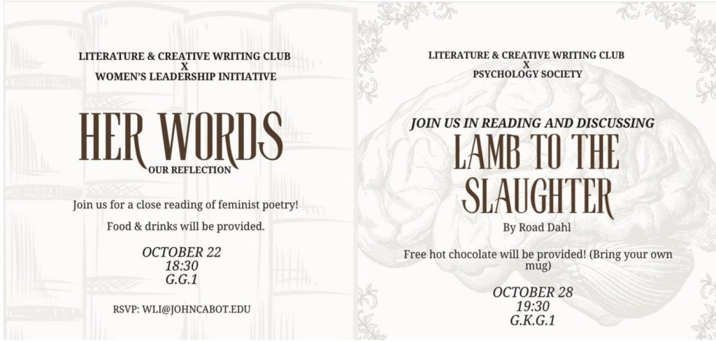 The Literature and Creative Writing Club Collaborate with the Women’s Leadership Initiative, Psychology Society and Queer Alliance to create a new series of events.