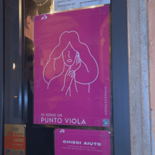 Punti Viola (Viola points) are any public establishment in the city which have been sensitized and trained to address gender-based violence and promote safety in public areas. Punti Viola serve as a local point of reference equipped with awareness and tools to assist individuals facing difficult situations.